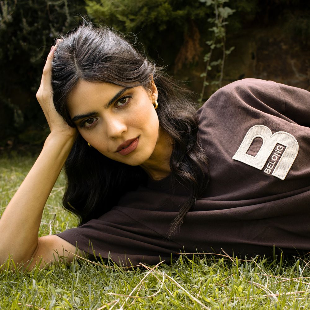 Front View: The front of the t-shirt features a bold "B / BELONG" logo on the left chest area.